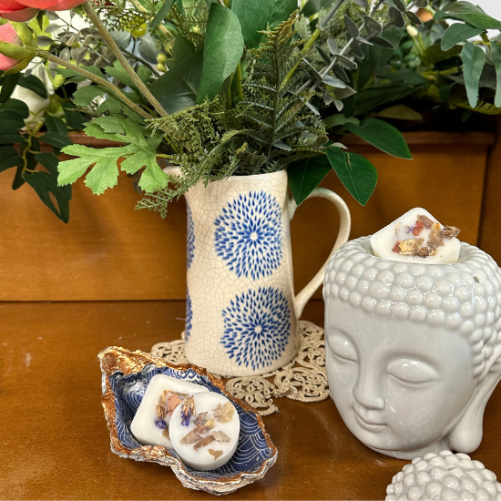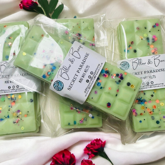 Themed melts that can be used whole in large warmers or broken up for use in smaller ones. Come packaged in pretty organza bags.