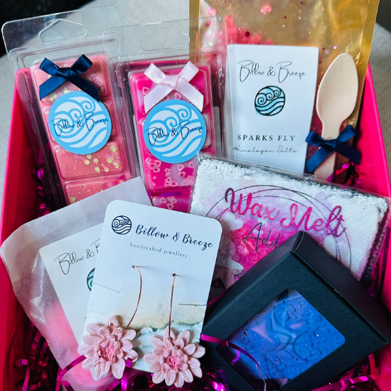 We can create personalised gift boxes for every occasion. This is an example of the gift box we did for a new mum, personalising a snap bar in the baby's honour. You can add as little or as much as you want and we will make and collate the ideal gift. Please get in touch by either asking at the shop or sending us a message. The price stated is for this particular selection only.